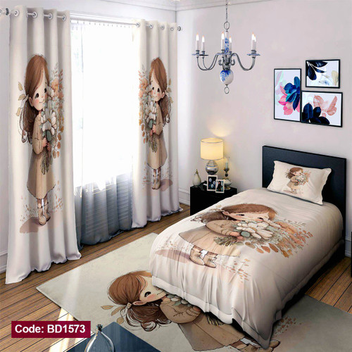 روتختی تک نفره دخترانه طرح دختر دسته گل دار مدل ابرنگی
